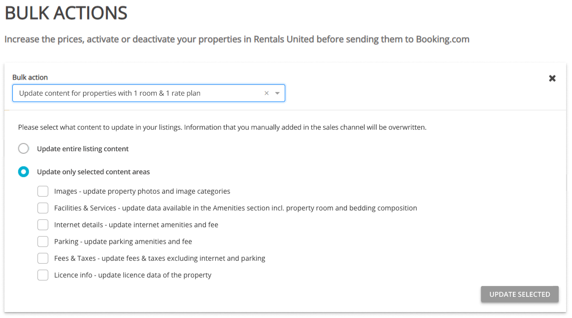 Select Update content for properties with 1 room & 1 rate plan from the dropdown list.