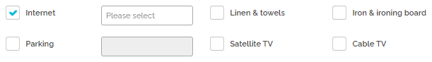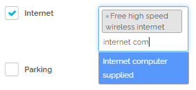 Amenities can have more precise information provided; hence, there are inactive information fields next to some of them, for example Internet or Parking. These fields become active after ticking the amenity box.