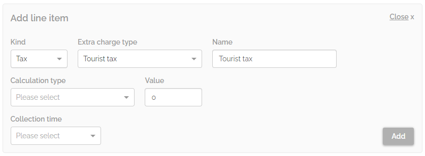 From the dropdown list, specify the charge Kind (Tax or Fee). Two additional fields appear.