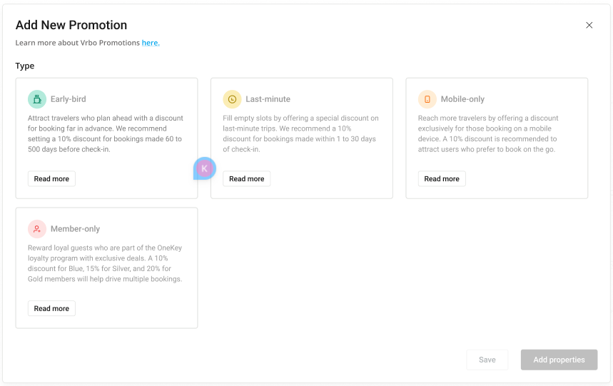 Vrbo promotion types