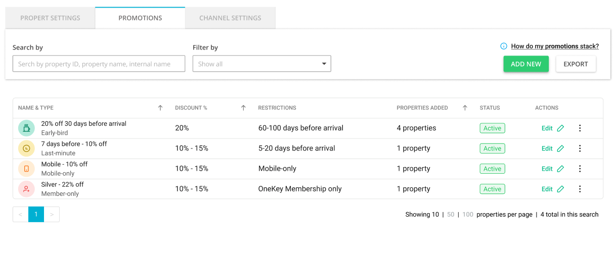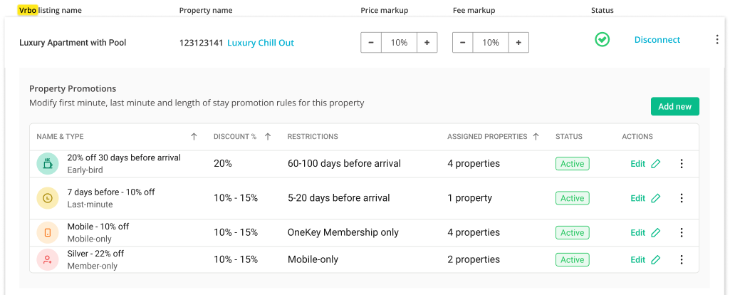 Promotions - for managing all your discounts for all your listings at once. View your discounts from the account’s perspective.