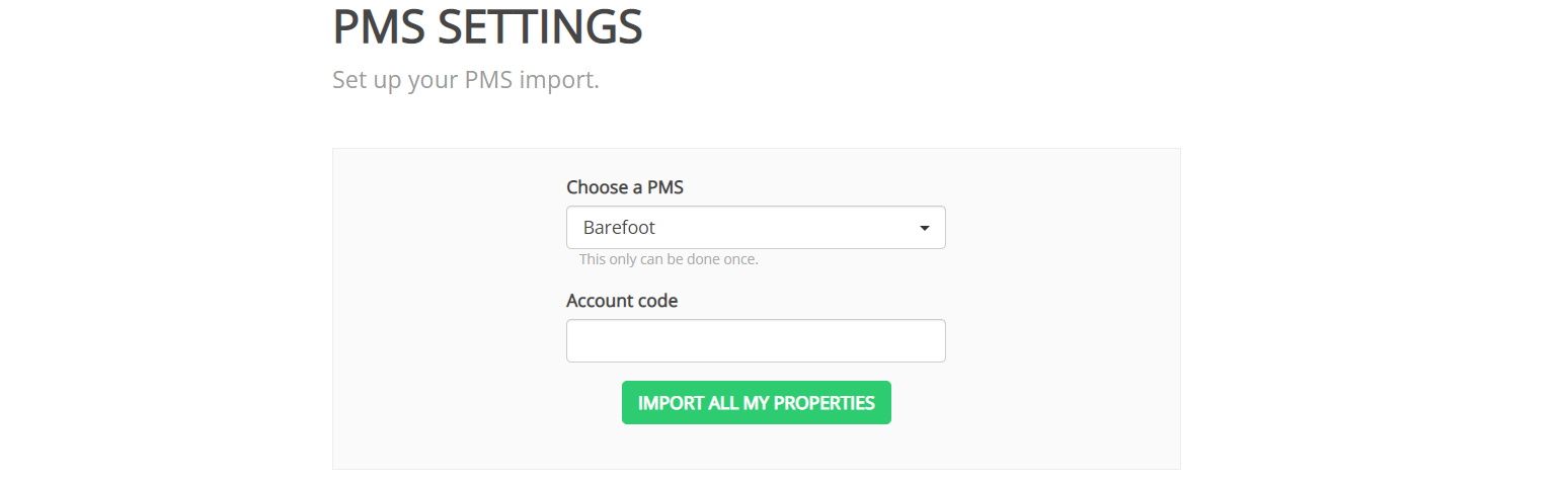 Tip: If you do not know where to find the required information, please contact Barefoot Support. See [%=Chapters.ContactDetails%]. Click the Import all my properties button. All properties that fulfill Rentals United requirements to connect will be now imported from Barefoot into your Rentals United account.