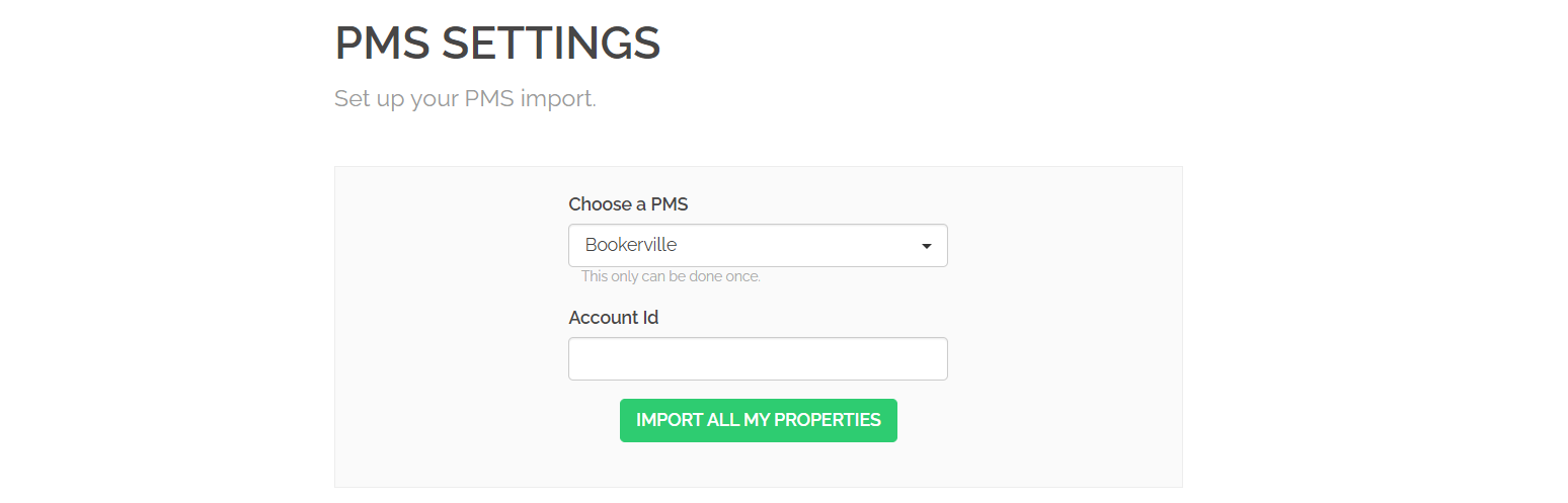 Click the Import all my properties button. All properties that fulfill Rentals United requirements to connect will be now imported from Bookerville into your Rentals United account.