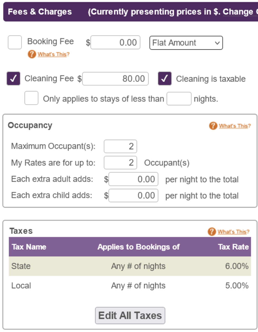 Then, go to Fees & Charges and also select fees that should be brought over to Rentals United.