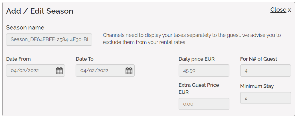Note that it will not be possible to make a reservation for a period in which prices are not defined.