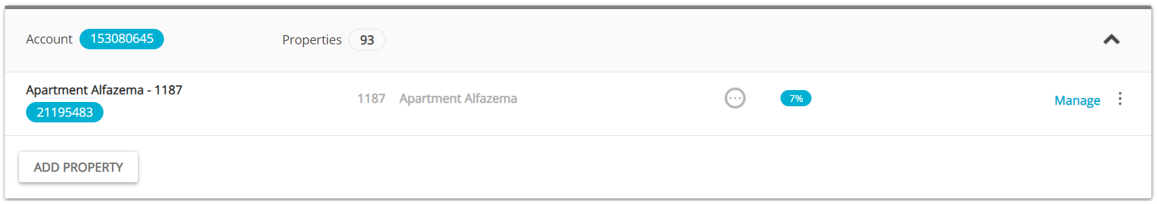- 1 - Clusters which represent an individual apartment. Clusters can be folded and unfolded. Even while folded, clusters' top bars take the colours of the properties' statuses, so that you can easily spot accounts that require your attention without the need to manually click them.