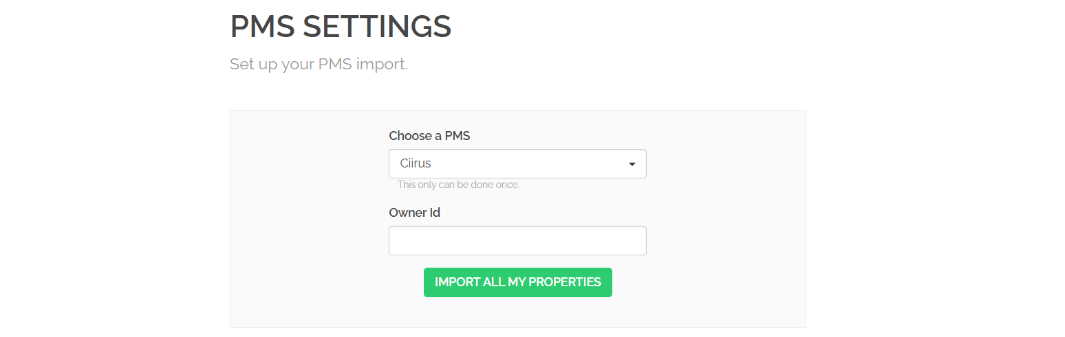 Click the Import all my properties button. All properties that fulfill Rentals United requirements to connect will be now imported from Ciirus into your Rentals United account.