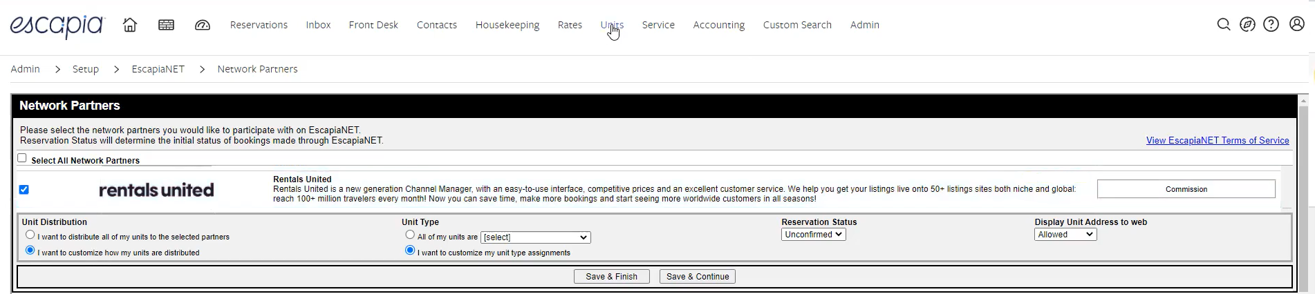 Go to Admin > Set-up > Escapia > Network Partners.
