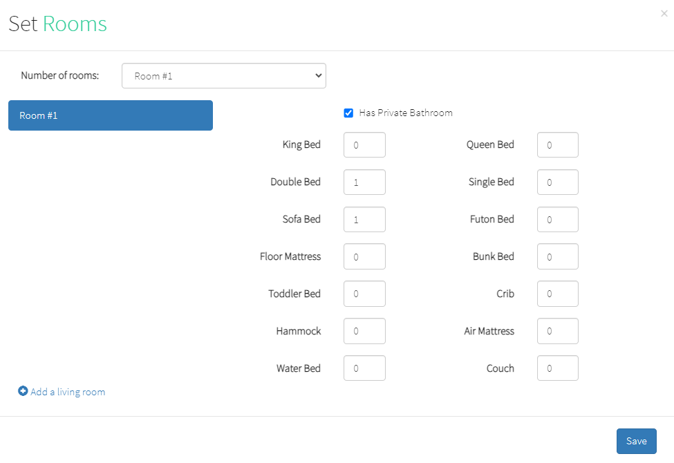 Hostfully does not provide a feature to distribute amenities across rooms. All amenities will be listed in the General section. This means that you may spot rooms with no amenities at all or rooms with beds only.