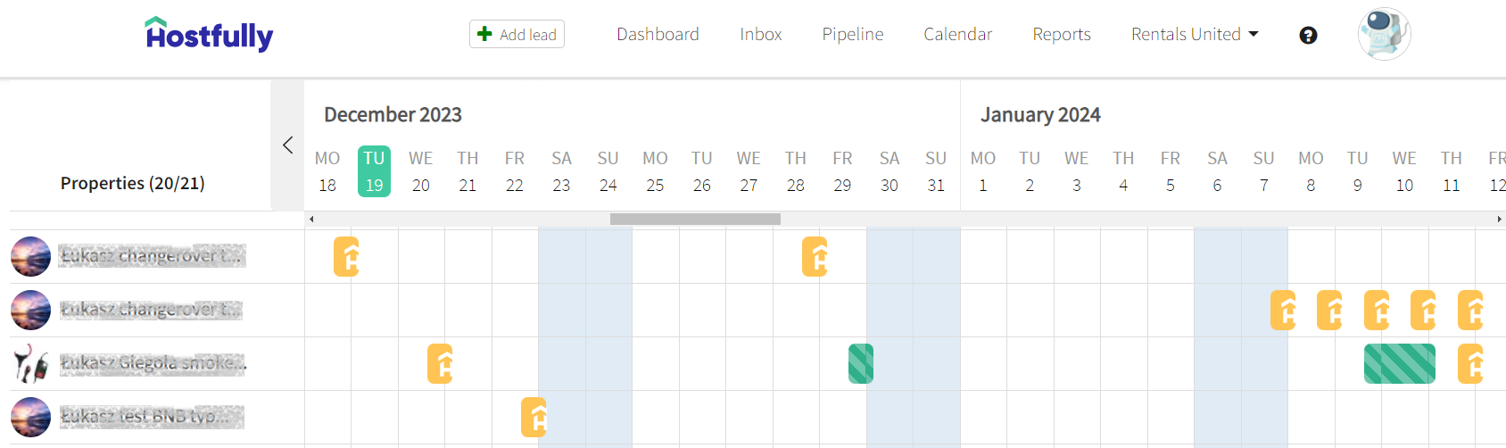 In Hostfully: Rentals United > Calendar |