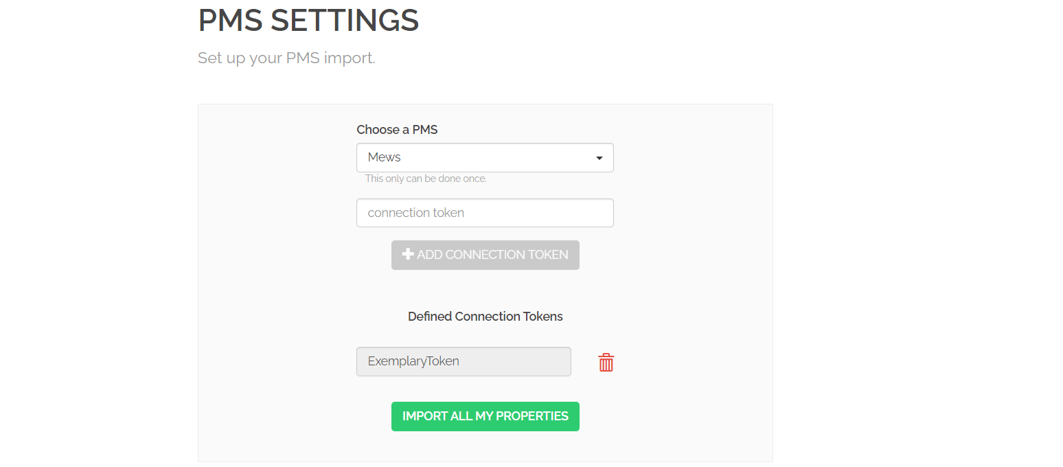 Click the Import all my properties button. All properties that fulfil Rentals United requirements to connect will be now imported from MEWS into your Rentals United account.