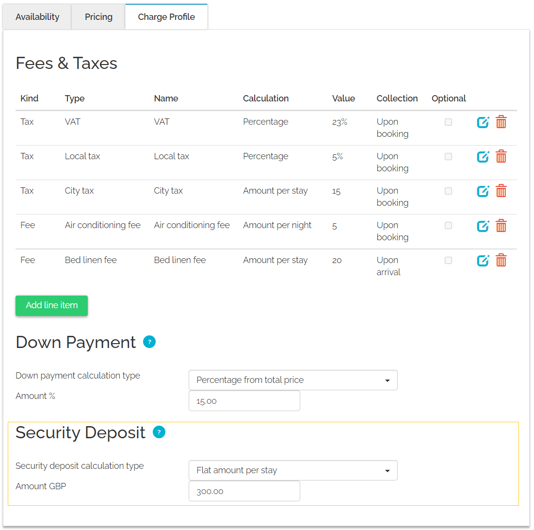 Security deposit is a mandatory or optional refundable charge the guest needs to pay to cover for potential property damages.