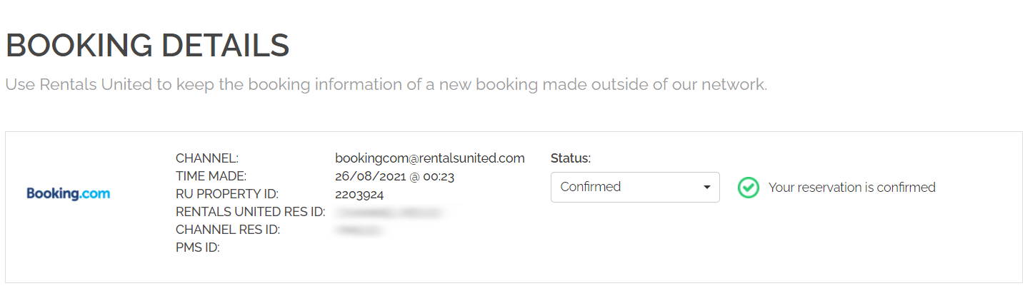 Important: In case a reservation’s status is “Cancelled” in Rentals United and that reservation gets re-confirmed in RNS, then such a change is ignored by Rentals United. The status change from “Cancelled” to “Confirmed” is not allowed, regardless of the source channel.
