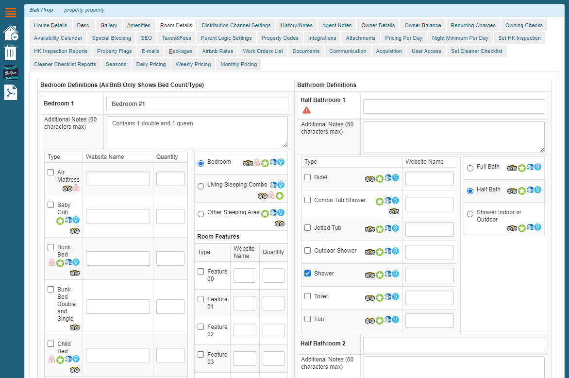 Streamline VRS provides a feature to distribute amenities across rooms and the property layout is preserved when synchronized to Rentals United.