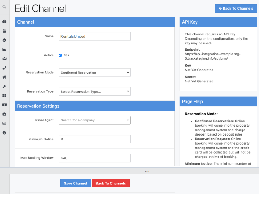 Generate Channel API keys in TRACK.