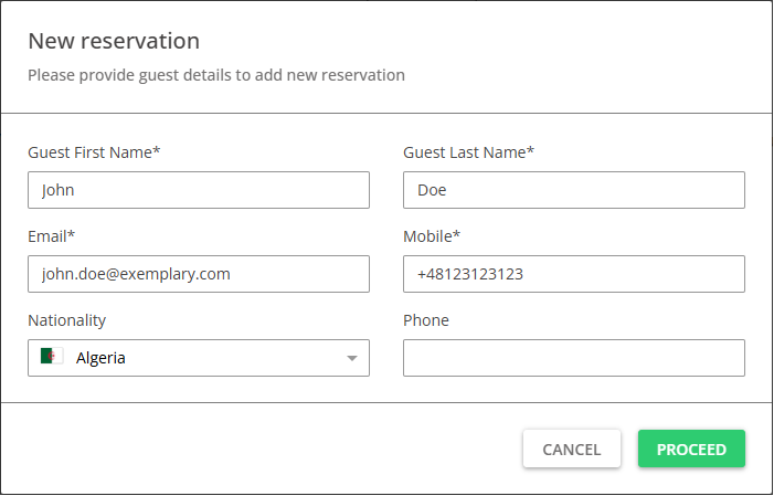 Enter the guest details and click the Proceed button.