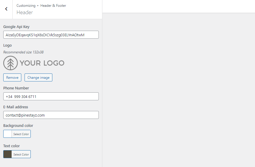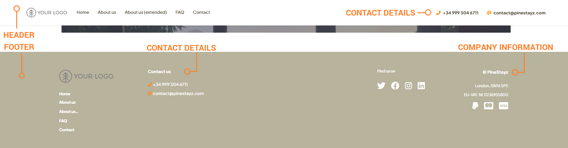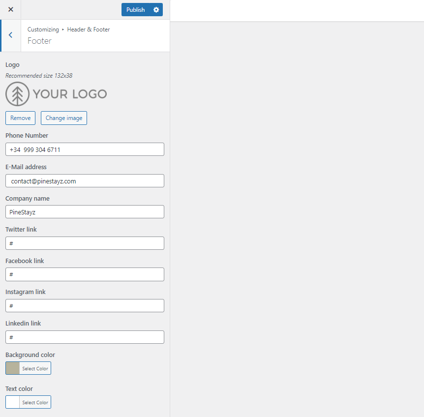 Contact details get updated in both header and footer. Changes are immediately visible on your website.