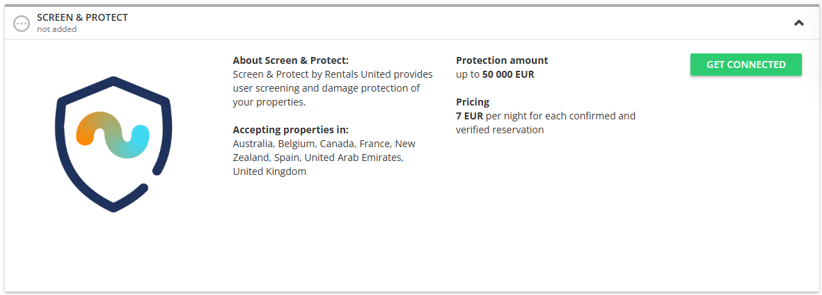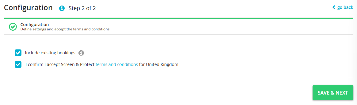 If you do not select this option, the Screen & Protect will be applied only for reservations created after you have finished connecting to this service.