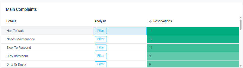 It provides you with a summary of the most frequently reported issues. See how many reservations reported some areas as problematic and address the most common guest complaints. This report is a quick way to effectively increase your listing’s ratings.