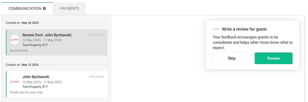Automated reviews are pre-scheduled for every guest unless you choose to write a manual review or skip the review.