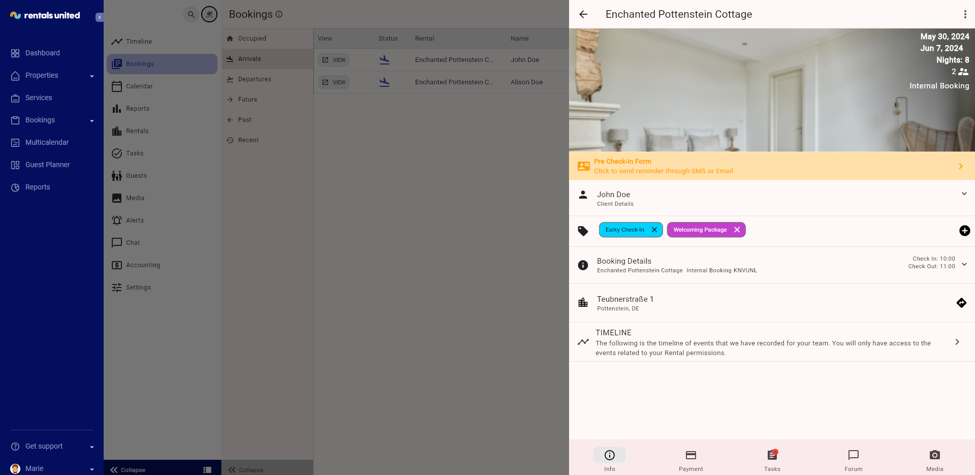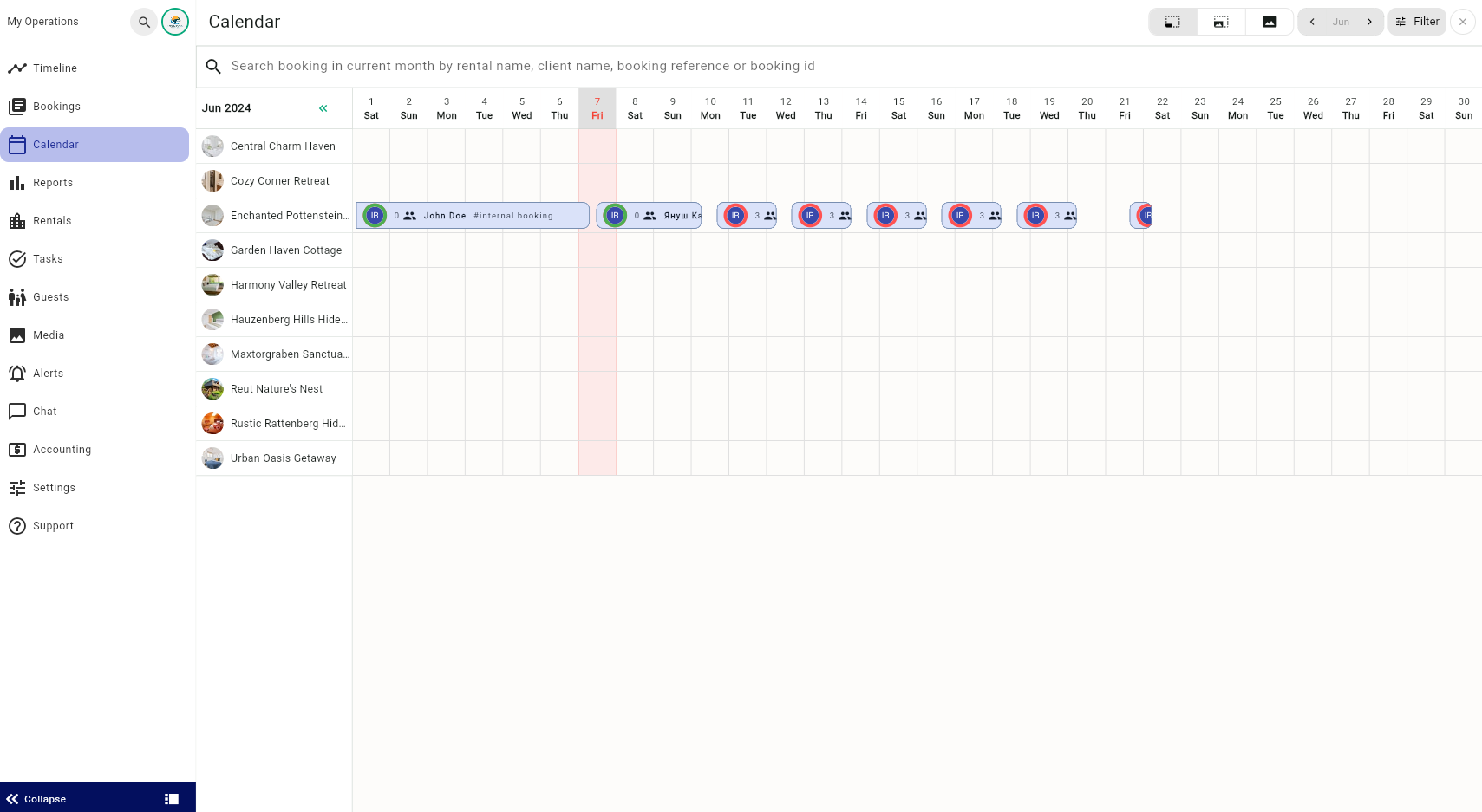 The Bookings tab within Operations Management should be used to perform tasks related to the bookings: cleaning, charging, accounting etc. Note that your team members will not have access to the Bookings tab within Rentals United, hence this interface is primarily for them.