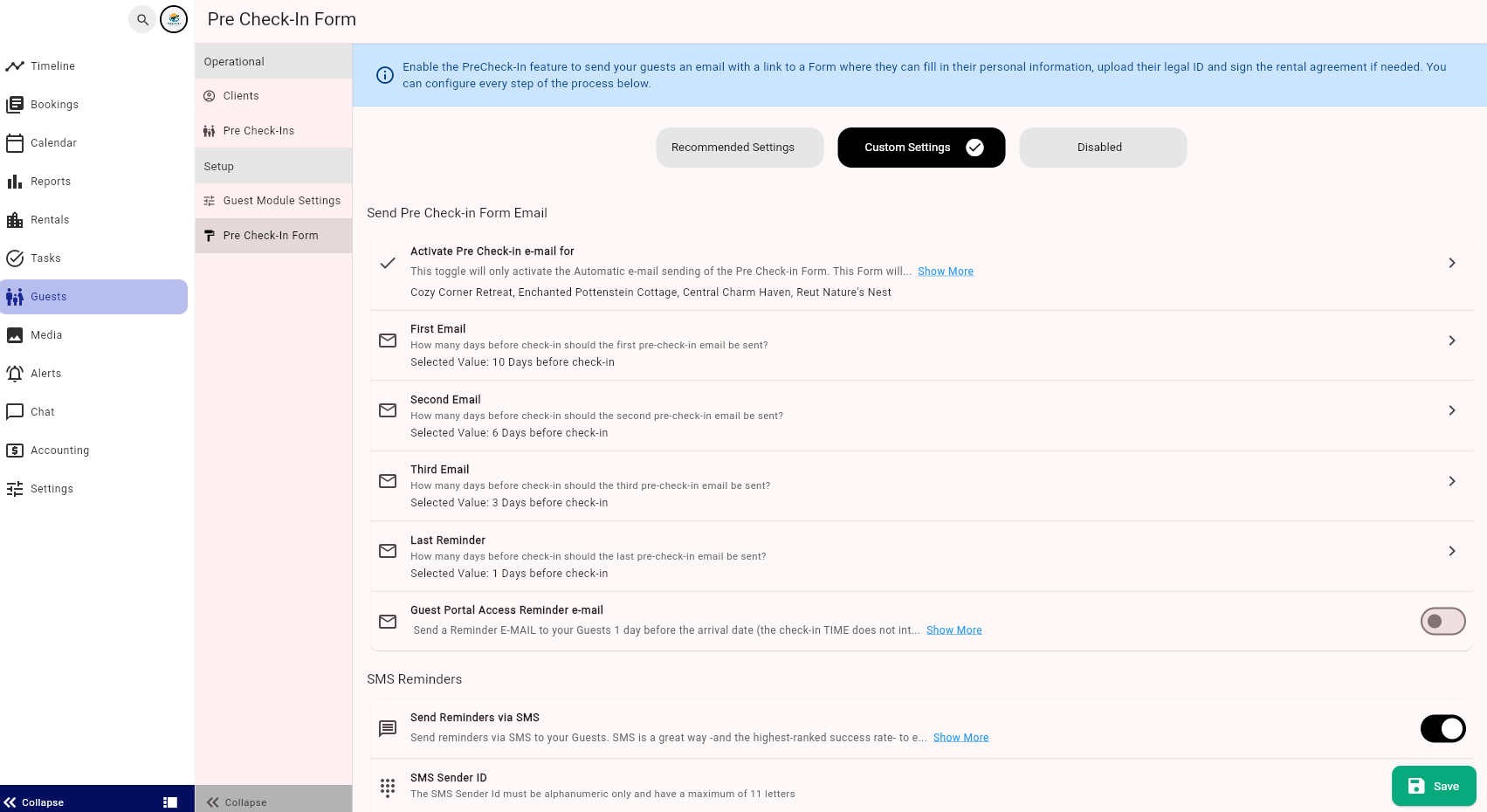 In Guest Portal Access Reminder Email, you can set up a reminder to be sent one day before the arrival. Reminders are useful as the guests may have filled the Pre-check in form long ago. This email reminder provides again the details about how to get into the Guests Portal.