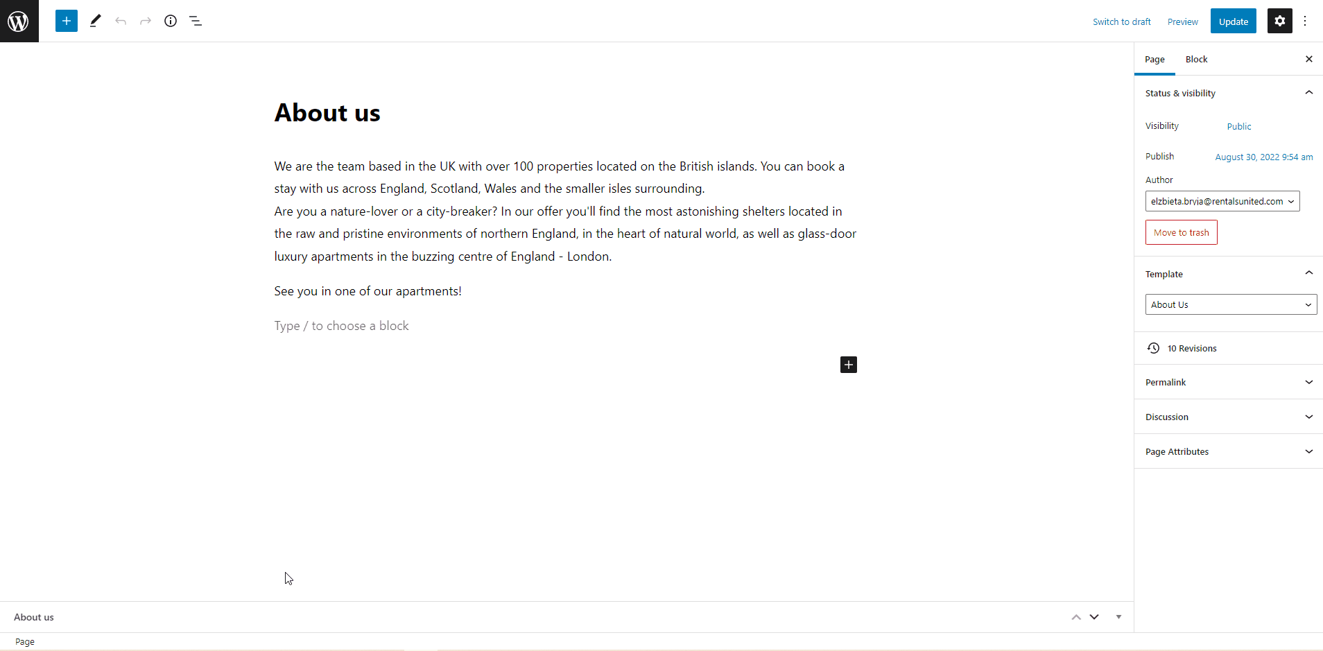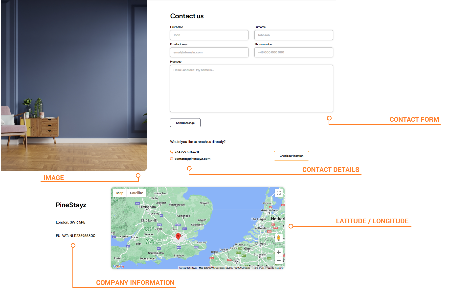 Contact page may be yet another option to contact you by your guests, along with your email address and phone number. It may function also as a good alternative in case you do not want to share the company contact explicitly and publicly. Note, however, that the easier the contact with you is, the more trusted your company seems and the higher the chances of contacting you by the guests to dispel their doubts about your services.