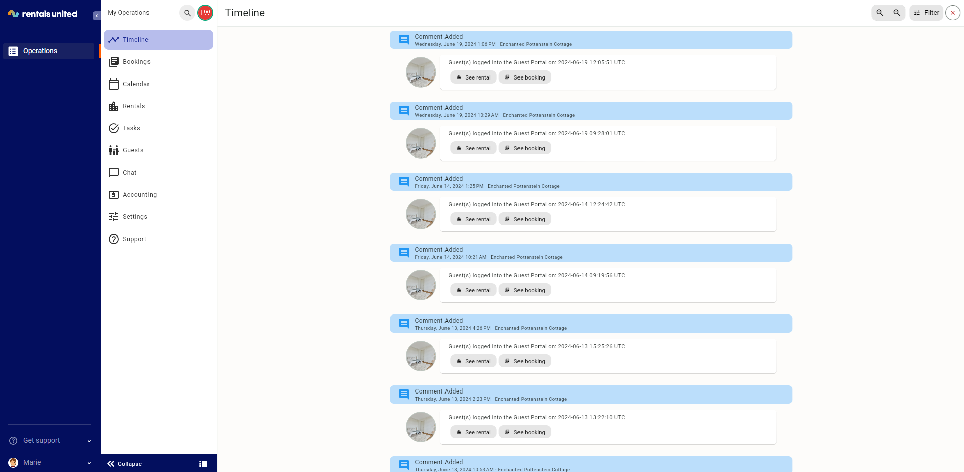 On top of that, your team members will have access to different areas of the Operations Management tabs depending on the selected role. For example, the members being the members of the Cleaning Staff will not have access to the financial information or statistics, but will have access to the properties and bookings.