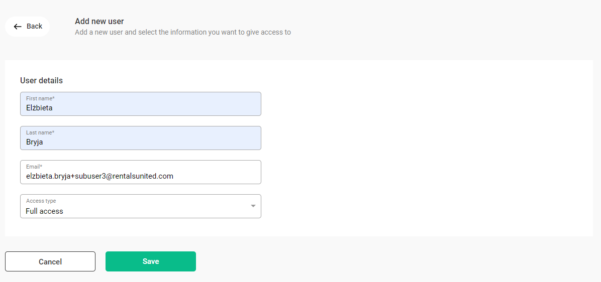 For example, the Rental Manager role is assigned by default to all users who are granted with Full access to the platform. This role indicates that the user has access to the Rentals United platform and the Operations Management tab.