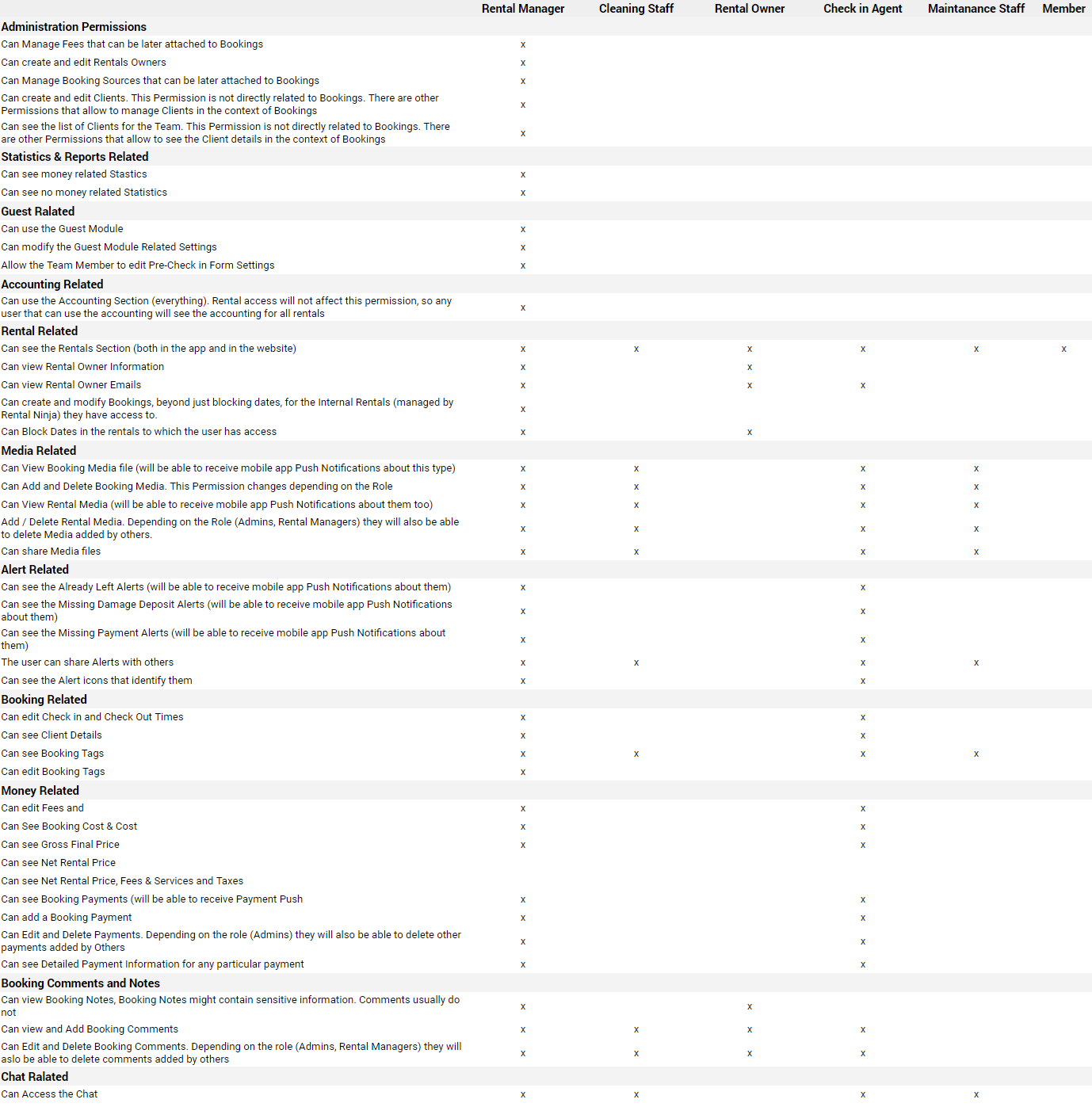 Depending on the role you select for your team member, they will have access to the different parts of the platform. This way you ensure that no unauthorised team members (e.g. cleaning staff) have access to sensitive information (e.g. guest details or financial information).