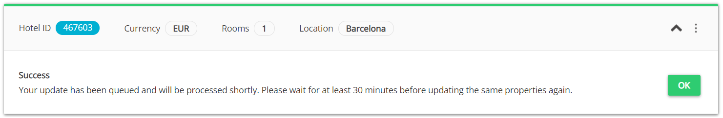 Confirm by clicking the OK button. Wait until the process is finished. You may preview the listing on the Agoda website after the indicated time is passed.