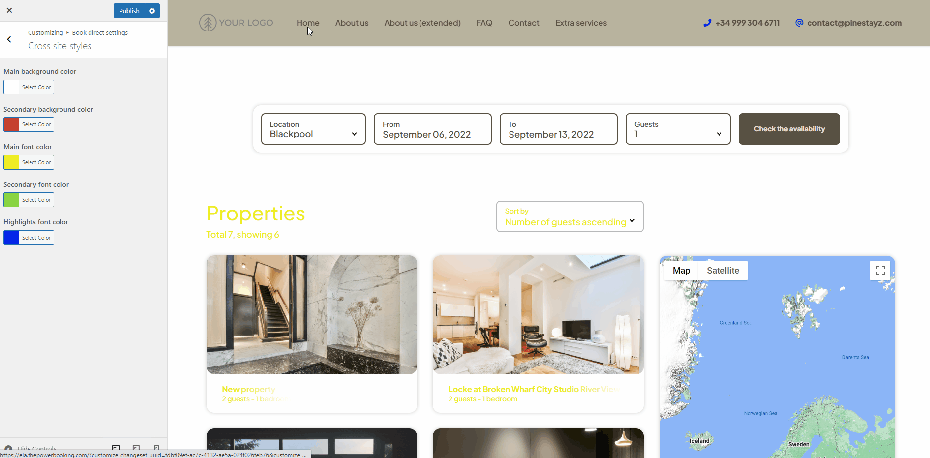 Select Cross-site styles. Manipulate the colours and see how they are displayed on the page. You can see the live preview on the right.