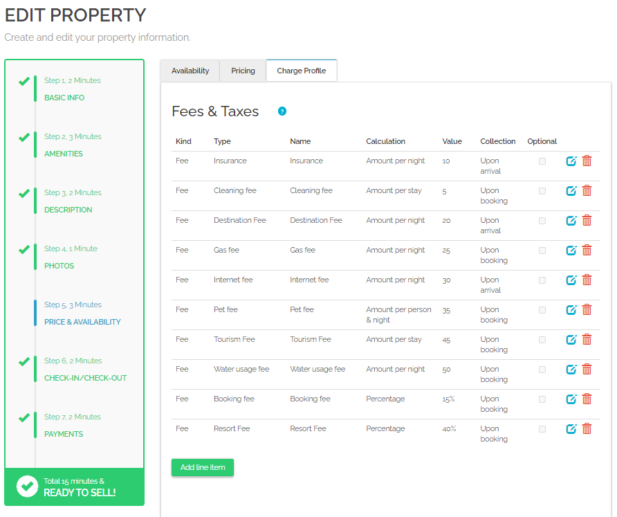 | 41 | Cleaning fee | 3 | Percentage | Upon arrival | Service Charge Per Room Per Night(%) - (Property Collect) |