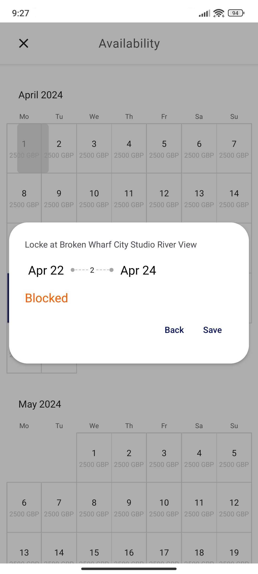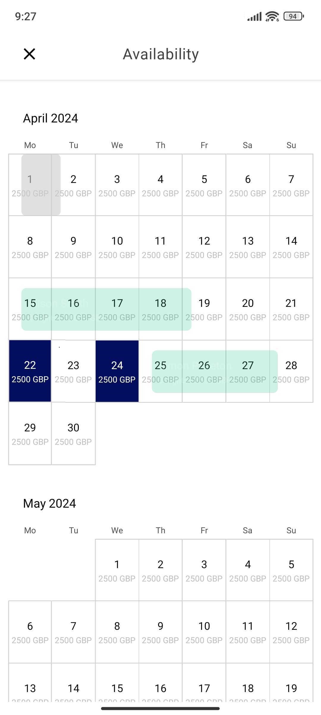 Select the range you would like to close availability for. Tap the start date and the end date.