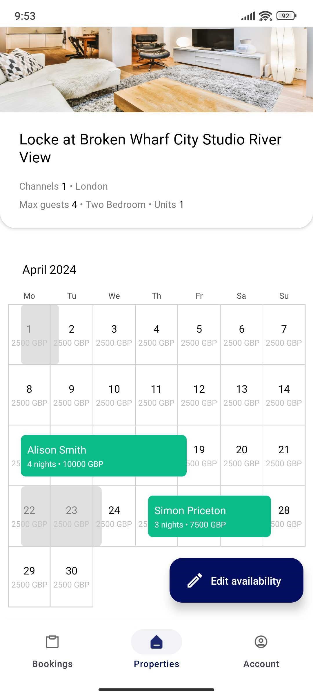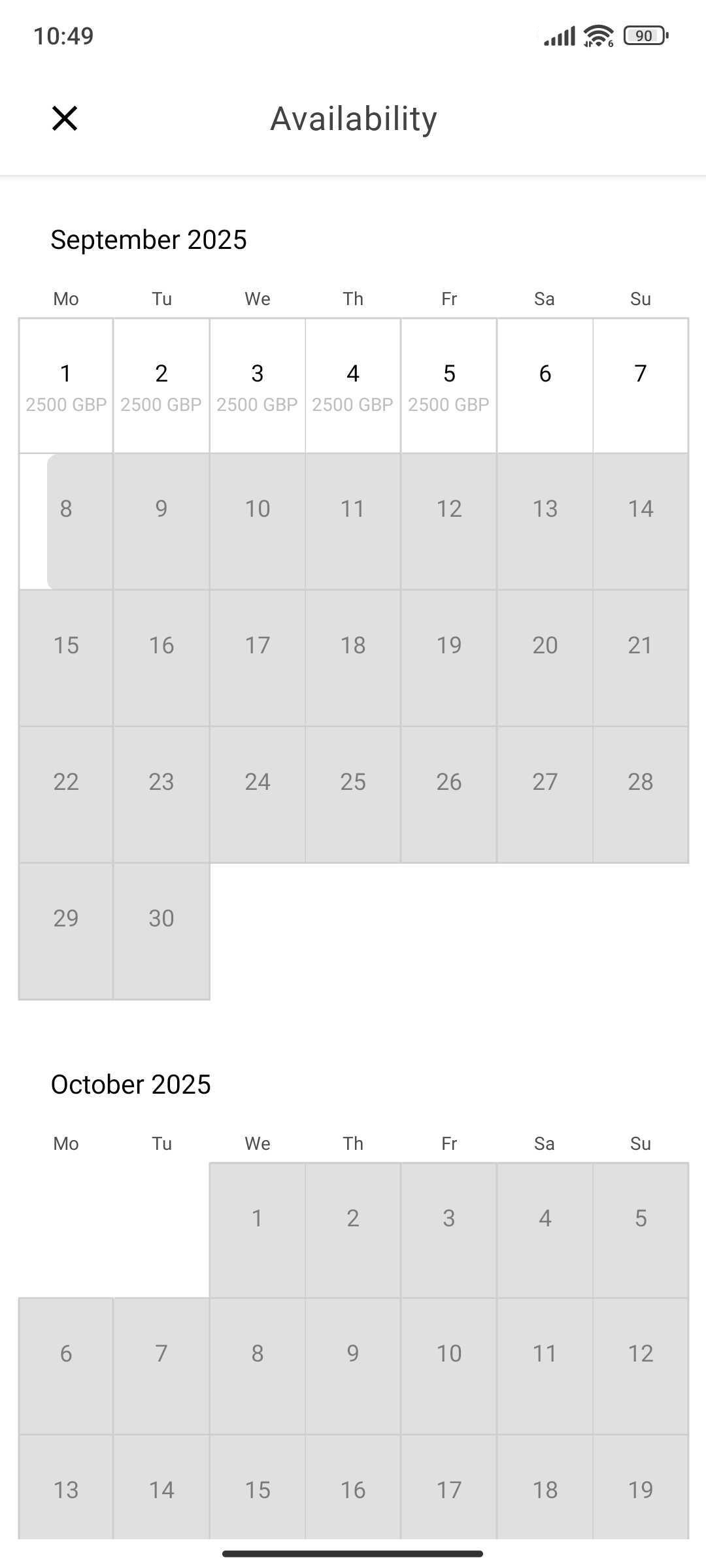 Negative: If you can't see the price on the open (available) dates, then you should block that period or set the correct price. See the period from 6 Sep - 7 Sep.