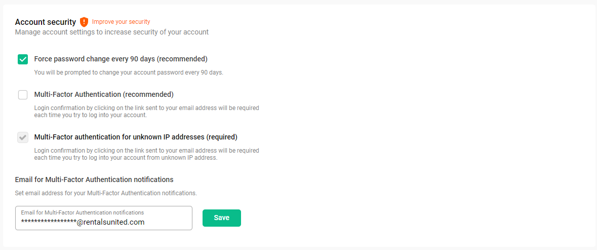 If you are the account owner, you can change the MFA settings in the Security tab in main menu. Read more about the security settings here.
