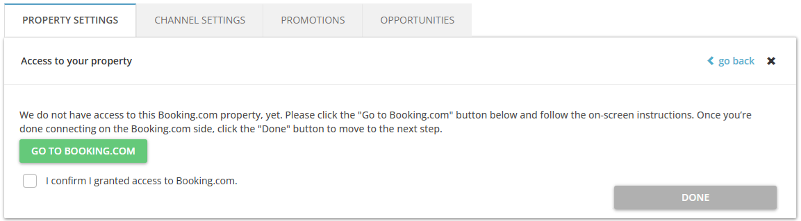 Booking.com page opens. Follow the on-screen instructions and grant us access to the listing in Booking.com.