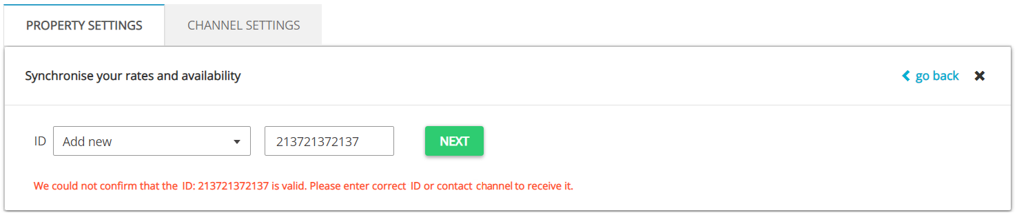 Your connection is now being validated in the background. If the validation is passed successfully, the Connection Wizard is launched and you can go to the next step. If you are not eligible to connect to Booking.com, an error is displayed.