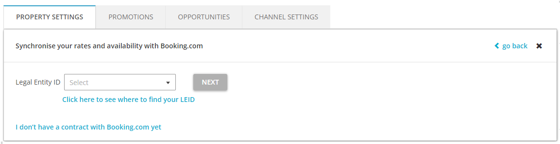 - Booking.com Legal Entity ID (LEID) - you can use an entirely new LEID or select an LEID used in the past.