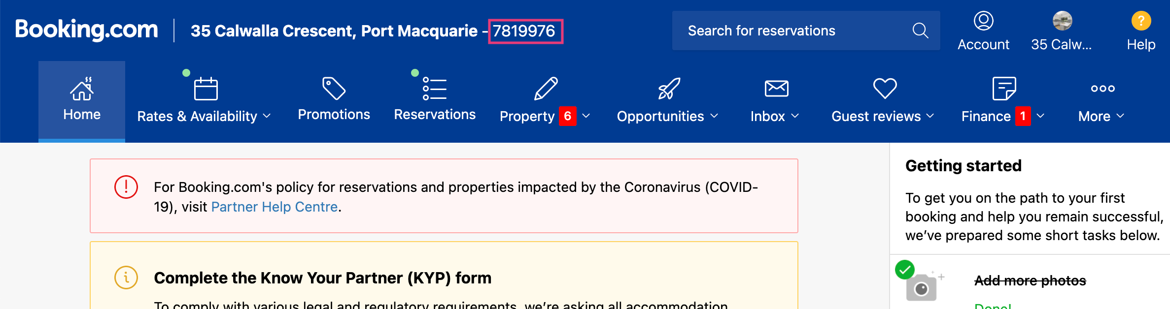 Property ID can be found in the Booking.com dashboard. If you can't find it, contact the Booking.com Support Team.