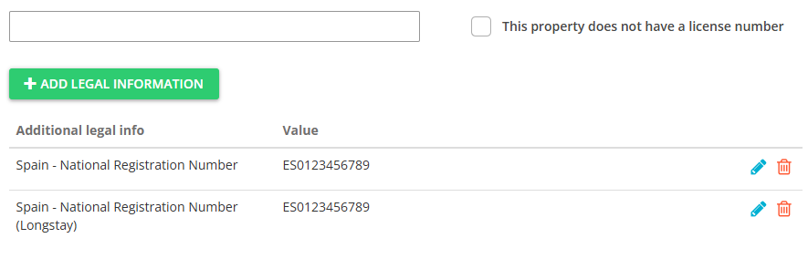 If your properties are located in Spain, you need to make sure the National Registry ID is included in the licence details.