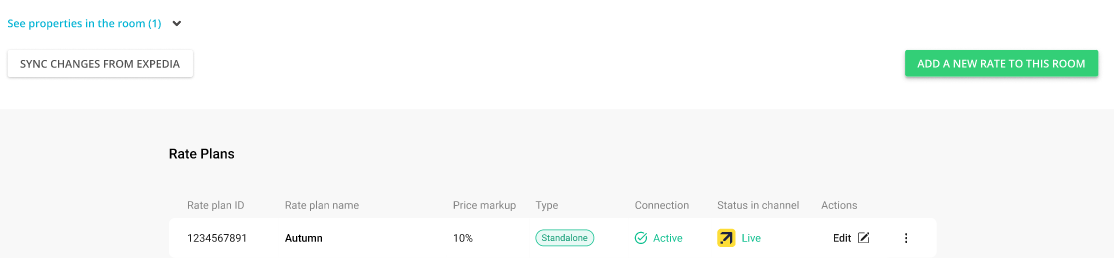 For each room type we present a list of rate plans assigned to it in Expedia.