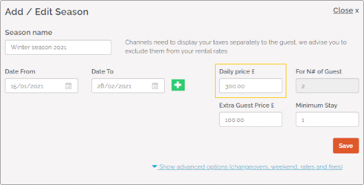 Note that it will not be possible to make a reservation for a period in which prices are not defined.