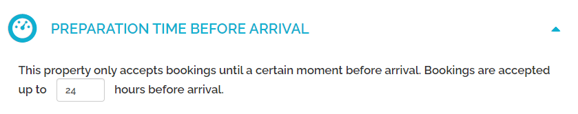 The PTBA in Rentals United blocks the availability x hours from 23:59 of the day of arrival on the property's local timezone. For example if the PTBA is set to 6 hours, bookings will be accepted until 18:00 of the day of arrival, after 18:00 the calendar will be closed. If the PTBA is set to 24 hours, bookings will be accepted until 23:59 before the day of arrival, after that the calendar will be closed.