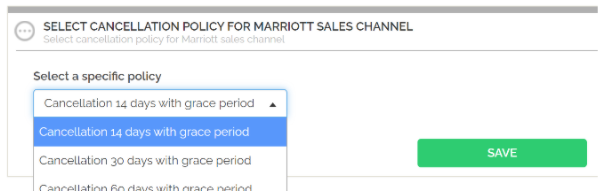 You are allowed to choose one of the general CPs predefined for Homes & Villas by Marriott Bonvoy in the Channel Settings. There are five policies to choose from: