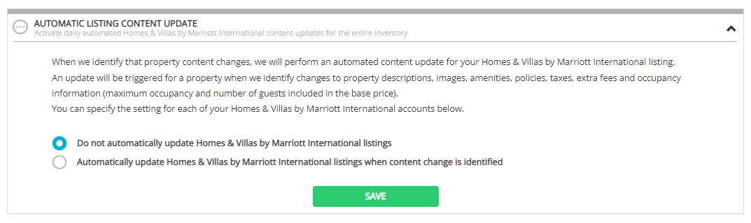 Property descriptive content updates include fees, taxes, standard number of guests and maximum occupancy. These data can influence your pricing. Changes in extra guest price or discounts do not trigger an update.