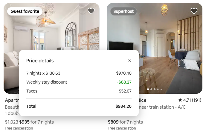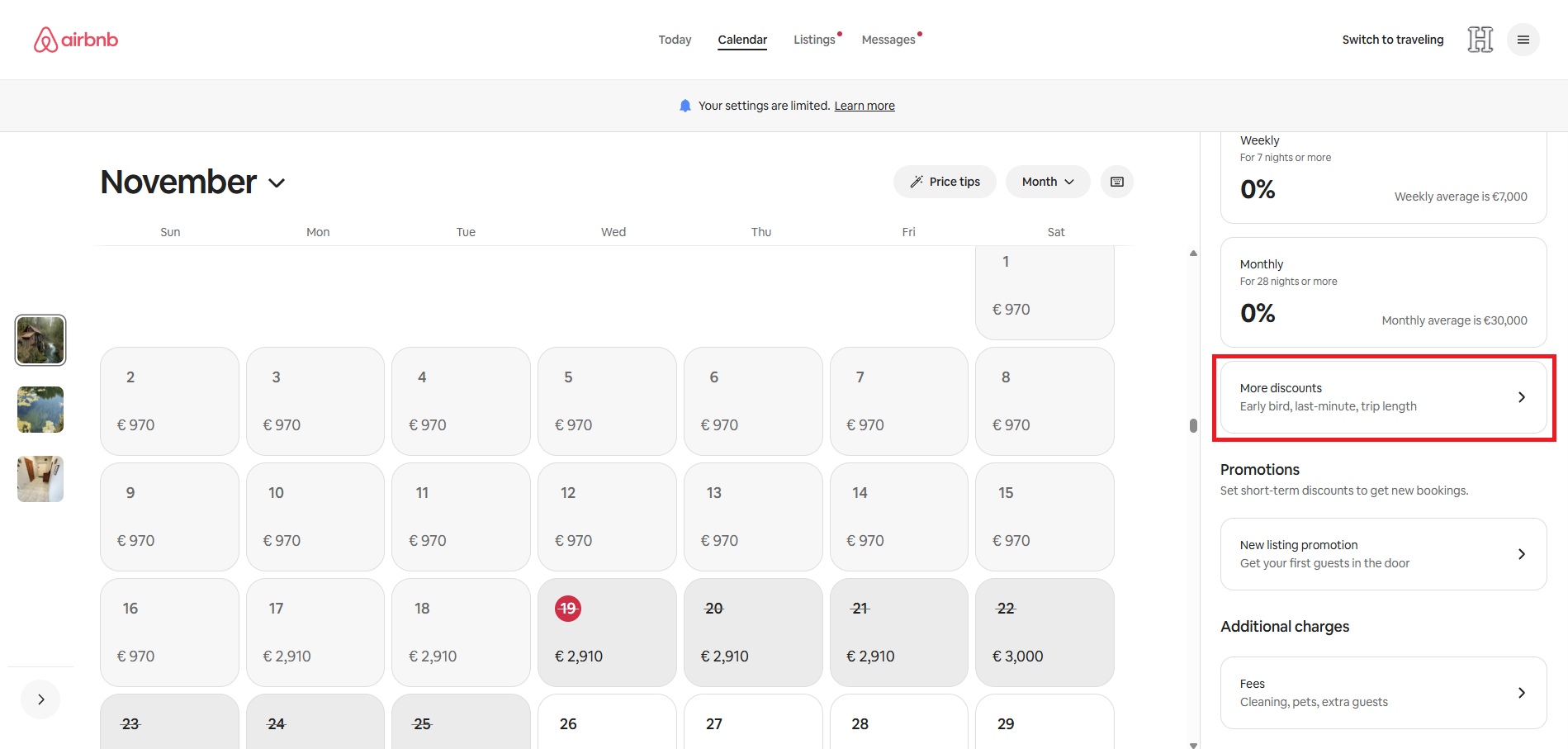 Long-term and early-bird discounts are promoted to guests on the Airbnb website and are a great way of boosting reservations. These promotions will be highlighted next to your original price in the price breakdown on your listing.