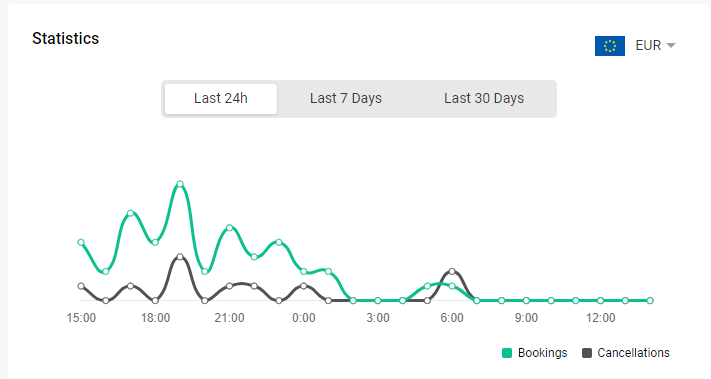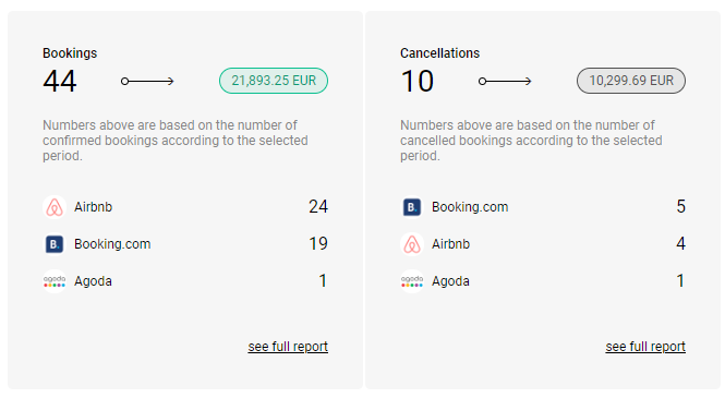 You can also monitor the exact number of bookings and cancellations as well as your gained and lost revenue in a currency of your choice. You can also see the top three channels that generated the highest number of bookings and cancellations.