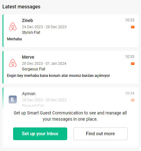In this part of the dashboard, you can view the latest chats with your guests. The new messages notifications are presented in real-time, with the newest messages shown on the top.