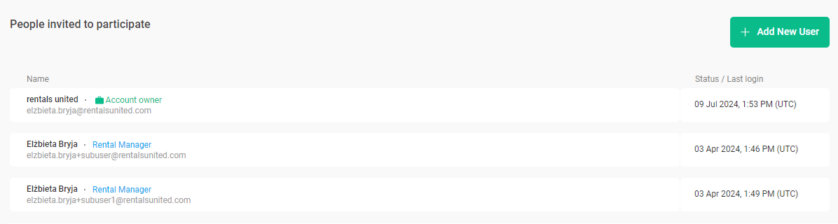 If you cannot see the User management section in the main menu, it means you are not the account owner. If you believe this is incorrect, contact the Rentals United Support Team.